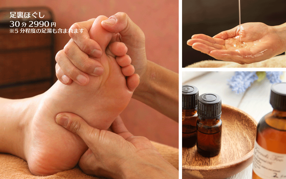 (例) 足裏ほぐし30分+身体ほぐし20分=50分4980円